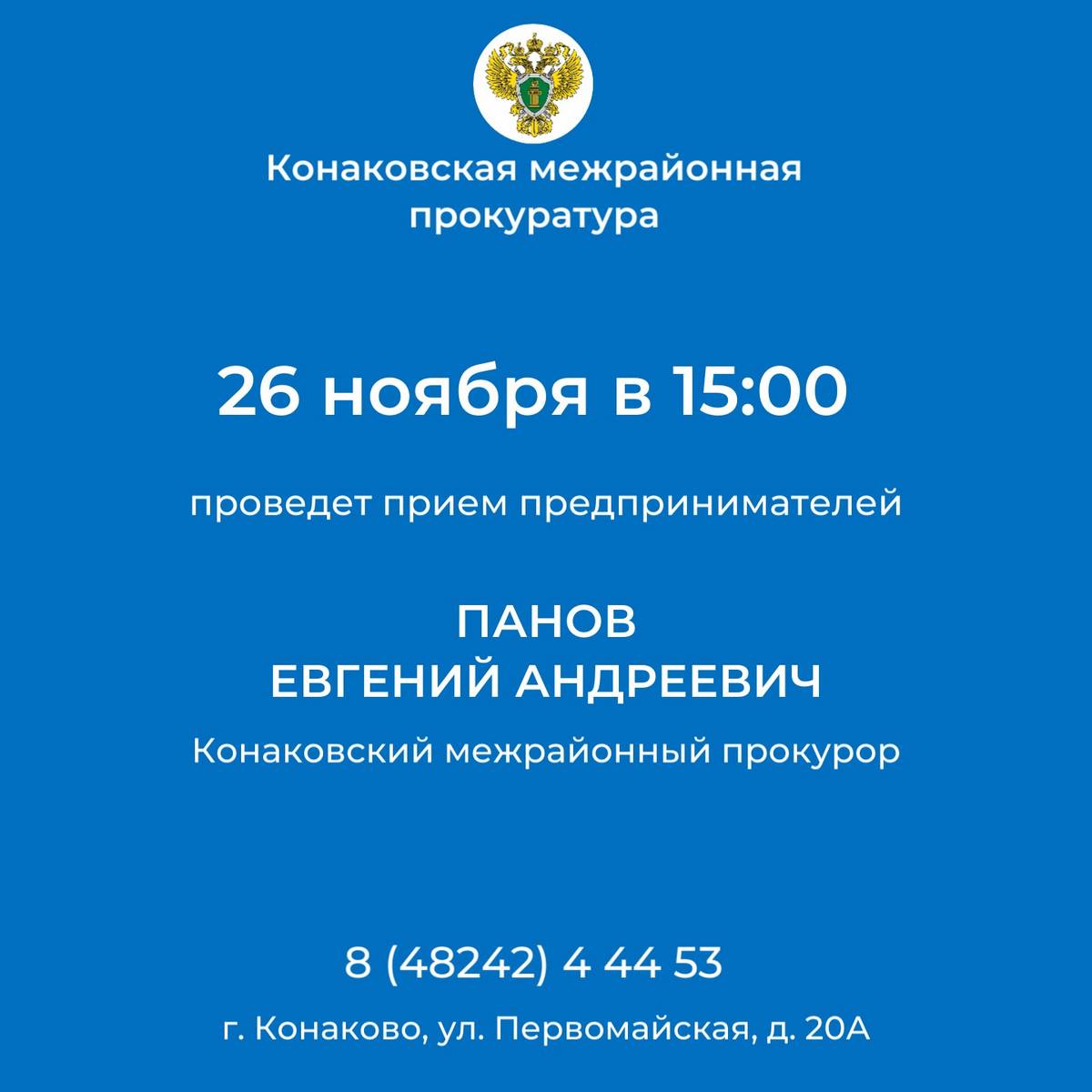 Конаковским межрайонным прокурором будет проведен прием предпринимателей