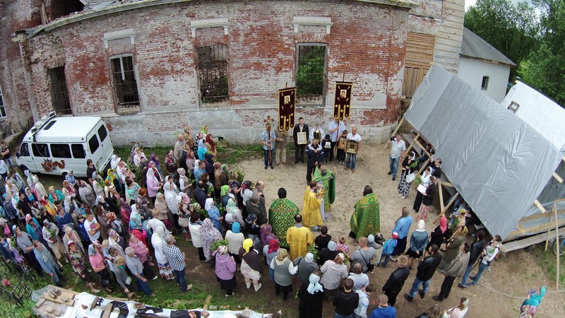 На праздник воздвижение креста приехали заместитель Главы администрации района по социальной политике Виктор Поршнев, депутаты Собрания депутатов Конаковского района Наталья Сергеева и Алексей Трунин. Приехал также конаковский старшеклассник Лев Теряев, который с помощью квадрокоптера провел съемку крутецкого храма с высоты птичьего полета.