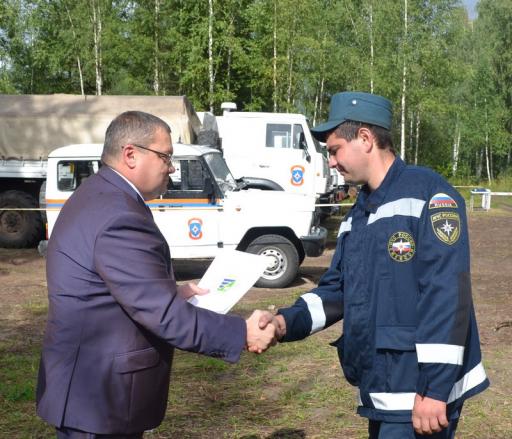 Грамотами и благодарностями Главы района и Главы администрации награждены 18 спасателей Ногинского спасцентра, которые месяц занимались обводнением торфяников и патрулированием пожароопасных участков в нашем районе. Глава Конаковского района Людмила Козлова и Глава администрации района Олег Лобановский вручили грамоты и благодарности лучшим спасателям в полевом лагере спасцентра недалеко в районе поселка Радченко. Чтобы принять участие в награждении и сказать подмосковным профессионалам слова благодарности, из Твери приехал заместитель начальника ГУ МЧС по Тверской области Александр Пухов.