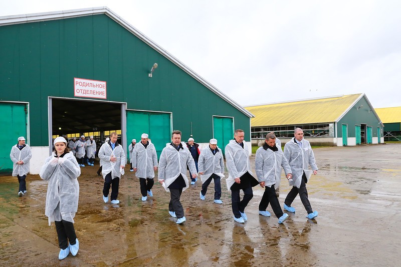 Полпред ознакомился с работой молочного комплекса, осмотрел площадку строящегося комплекса крупного рогатого скота. Кроме того, Александр Беглов и Андрей Шевелёв посетили комбикормовый и мясоперерабатывающий заводы, а также фирменный магазин, в котором продаются товары под брендом «Дмитрогорский продукт».