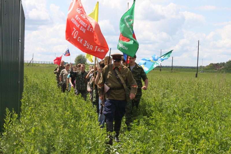 После окончания митинга у памятника сержанту Вячеславу Викторовичу Васильковскому и напутственных слов Главы Конаковского района Виктора Николаевича Крысова сводный отряд пешего марш-броска отправился в путь. Под знаменами 185-й стрелковой дивизии, флагом России, Конаковского района, и флагами организаций участников мероприятия команда марш-броска выдвинулась к деревне Павлюково. Проезжающие мимо машины, несмотря на патруль ГАИ, который сопровождал колонну, приветствовали участников марш-броска.