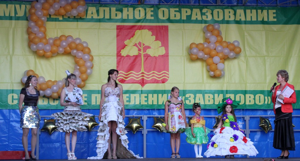 Весь день в поселении проходили праздничные мероприятия: выставки; спортивные соревнования; выступления творческих коллективов; чествование и поздравление юбиляров, долгожителей, новорожденных, общественников и выдающихся жителей села. А самым интересным и необычным, на наш взгляд, был конкурс «эко-моды» или сделай праздничный наряд своими руками. «Барышня-дворянка», «Королева новостей», «Диско-Леди», пляжный наряд, «девочка-лето» и кокетка – все костюмы участницы конкурса сделали из подручных материалов: газет, старых Mp3-дисков и даже целлофановых пакетов. Изобретательность и креативный взгляд на привычные вещи потрясли всех гостей праздника.