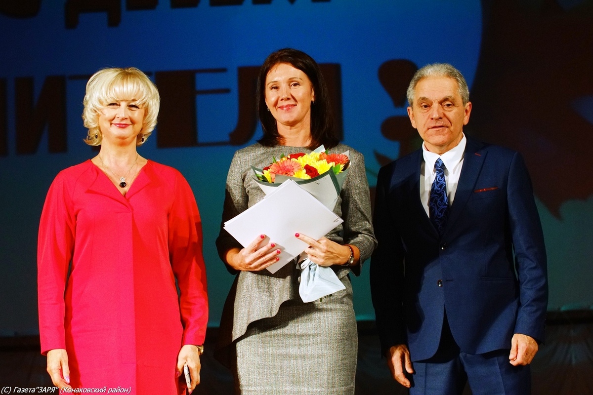 Лучшим педагогам Конаковского района вручили награды на торжестве в честь Дня учителя. Праздник прошел в районном Дворце культуры «Современник». В зале собрались директора школ, воспитатели и педагоги, ветераны педагогического труда, учителя, руководство города и района, депутаты, главы поселений, представители предприятий и организаций, общественность. В ходе торжественной церемонии почётные звания, грамоты и благодарственные письма получили конаковские педагоги, лучшие представители российского образования. Глава Конаковского района Олег Лобановский в своем приветствии поблагодарил педагогических работников за каждодневный труд, мудрость, неравнодушие и доброту сердец, пожелал новых творческих успехов. За многолетний добросовестный труд и достигнутые успехи в деле обучения и воспитания подрастающего поколения Благодарность Законодательного Собрания Тверской области вручена Людмиле Морозовой, учителю начальных классов школы №7 города Конаково, Светлане Мельниковой, учителю русского языка и литературы школы №9 города Конаково, Ирине Степановой, учителю истории гимназии № 5, Ирине Гориной, учителю начальных классов гимназии № 5. Глава вручил лучшим педагогам грамоты Министерства и науки. Награды получили Наталья Арханкина, воспитатель детского сада №10 города Конаково, Светлана Байгулова, учитель русского языка и литературы школы №2 города Конаково, Станислава Бакулина, заведующий детским садом №1 деревни Вахонино, Ольга Будехина, учитель технологии школы №8 города Конаково, Галина Грузинова, заведующий детским садом №1 деревни Старое Мелково, Маргарита Гучмазова, главный специалист не муниципальной службы управления образования администрации Конаковского района; Елена Дегаева, директор начальной общеобразовательной школы поселка 2-ое Моховое, Татьяна Дорофеева, учитель начальных классов школы №2 поселка Редкино, Светлана Журавлева, учитель математики школы №7 города Конаково, Станислав Иванов, учитель обществознания школы №1 города Конаково имени Дениса Сергеевича Стребина, Светлана Кузьмичева, директор гимназии №5 города Конаково, Светлана Осипова, заведующий детским садом №1 поселка Козлово, Светлана Перцева, воспитатель детского сада №7 города Конаково, Ольга Савинова, заведующий детским садом №3 поселка Редкино, Татьяна Трегуб, учитель русского языка и литературы школы №3 поселка Редкино, Светлана Хрестина, заместитель заведующего по воспитательной работе «Детского сада №1» деревни Мокшино, Светлана Шаповалова, преподаватель ДЮЦ «Новая Корчева». Почетными Грамотами Главы Конаковского района награждены Нина Борисова, директор школы села Завидово, Нина Крапивина Нина Павловна, директор школы № 8 города Конаково, Алиса Шошина Алиса, заместитель директора по учебно- воспитательной работе ДЮСШ «ОЛИМП», Маргарита Силованова, инструктор – методист ДЮСШ «ОЛИМП», Александра Федотова, тренер – преподаватель по самбо ДЮСШ «Единоборств», Анна Новикова, учитель географии школы поселка Козлово. За многолетний добросовестный труд в должности начальника управления образования и высокий профессионализм Грамотой Главы Конаковского района награждена Ольга Булгакова, директор школы № 7 города Конаково. Подарками и цветами были отмечены ветераны педагогического труда, 50 лет трудятся в школе Тама