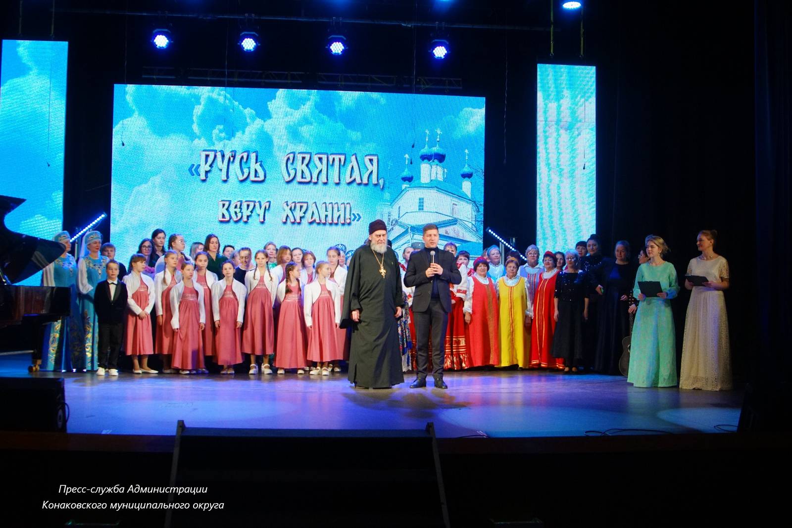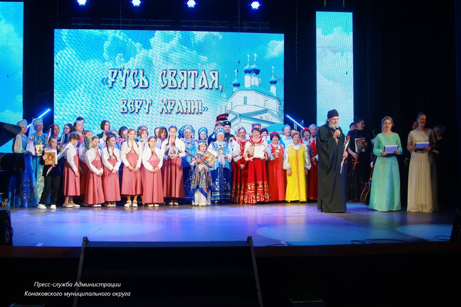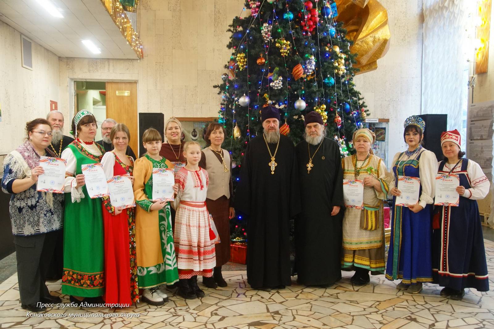 В концертной программе, ставшей яркой палитрой талантов всего округа, приняли участие: Хор девочек «Глория» (ДЮЦ «Новая Корчева», рук. Л. Антонова и О. Мартынова), Ансамбль русской песни «Каравай» и солистка Диана Усенко (КДЦ «Завидово», рук. Н. Смирнова), солист М. Кудрявцев (Вахонинский КДЦ, рук. О. Чекменёва), солистка Т. Корунова (ДШИ г. Конаково), Вокальный ансамбль «Северяночка» (рук. Е.В. Кривошеева, концертмейстер В. Воробьев), Хор «Верхневолжье» (Новозавидовский ДК, рук. А. Иванов), Хор мам (ДЮЦ «Новая Корчева», рук. Л. Антонова), Хор «Радость» (ДШИ г. Конаково, рук. Е. Башенева, концертмейстер Т. Темерова), дуэт Е. Римашевская и И. Хлынина, дуэт гитаристов Д. Кузнецов и Д. Приказчиков (ДМШ п. Редкино, рук. Е. Римашевская), солистка О. Бардакова (ДК «Современник»), Ансамбль «Вдохновение» (КРОО ВОИ рук. С. Климичева), Академический хор (Редкинский ДК «Химик», хормейстер Е. Римашевская, солист о. Михаил Кризина), Вокальный ансамбль «Фантазия» (ДК им. В.В. Воровского, рук. Н. Юдина) и Ансамбль русской народной и казачьей песни «Воля» (ДК «Современник» рук. В. Воробьев).