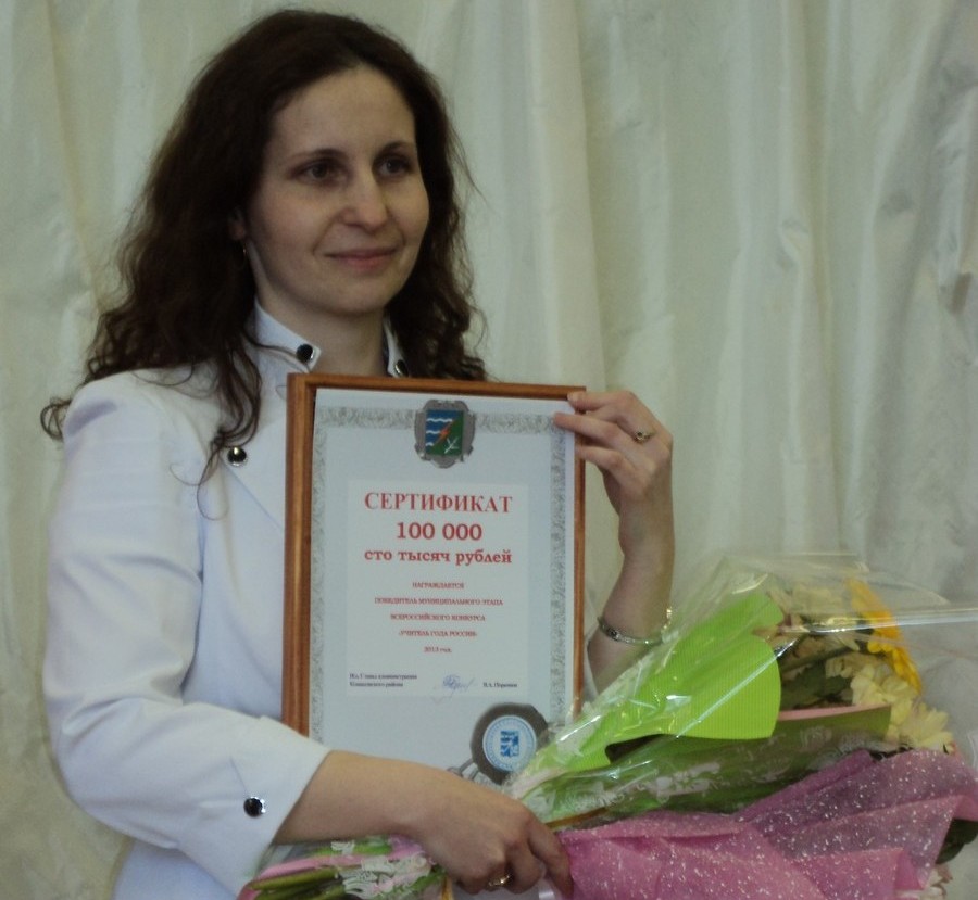По итогам оценочной деятельности, жюри приняло решение присвоить звание победителя районного этапа Всероссийского конкурса «Учитель года-2013» Светлане Павловой из Новозавидовского. Она получила сертификат на 100 тысяч рублей! Не остались без наград и другие конкурсантки. Олеся Шеина из Редкино получила диплом Лауреата 1 степени и сертификат на 25 тысяч, Наталья Иванова (Новозавидовский) и Елена Исайкина (Вахонино) – диплом Лауреата 2 степени и денежные сертификаты на 10 тысяч, и Елена Земова (Селихово) – диплом Лауреата 3 степени и сертификат на 5 тысяч рублей.