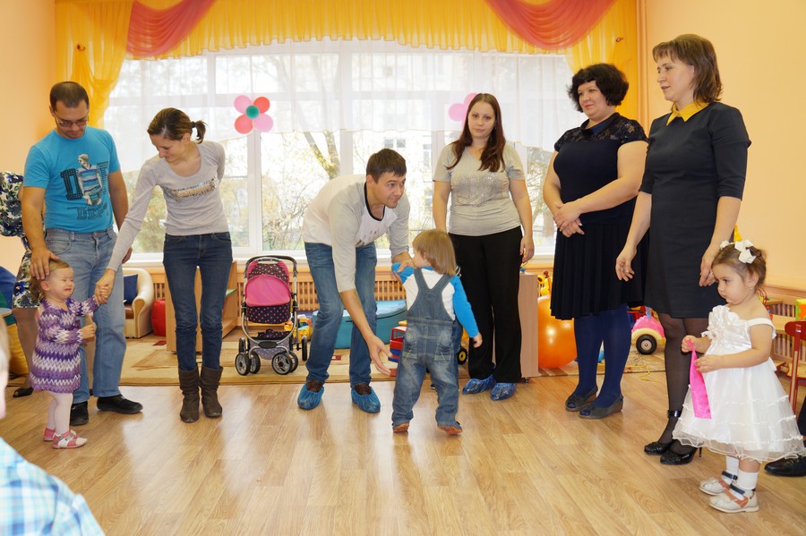 Высокие гости — Глава района Людмила Козлова и Глава администрации Олег Лобановский — появились у двери новой группы ровно в назначенное время. Здесь их уже ждали родители и дети из будущей младшей группы, с нетерпением поглядывася на красную ленточку, которую предстояло перерезать. «Ну, кто из вас самый смелый, кто будет мне помогать?» - спросила Людмила Алексеевна Козлова. Помогать вызвалась Василиса Хохлова, которой совсем недавно исполнилось два года. По случаю первого дня в детском саду Василису нарядили в бальное платье, и она без малейшего смущения помогла перерезать ленточку перед входом в группу, после чего все вошли в зал.