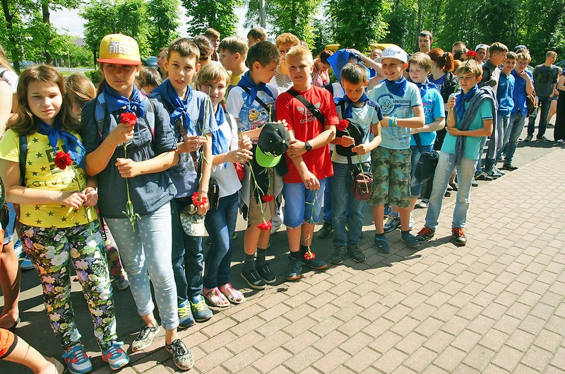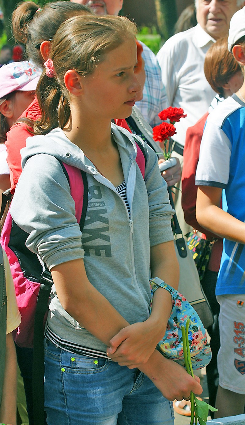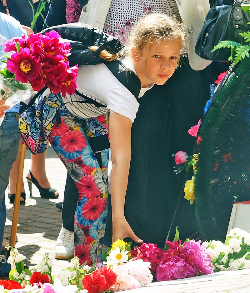 После выступлений ведущий объявил минуту молчания, а потом состоялось возложение цветов к воинскому мемориалу. Через несколько минут скромная могила буквально утопала в цветах и венках.