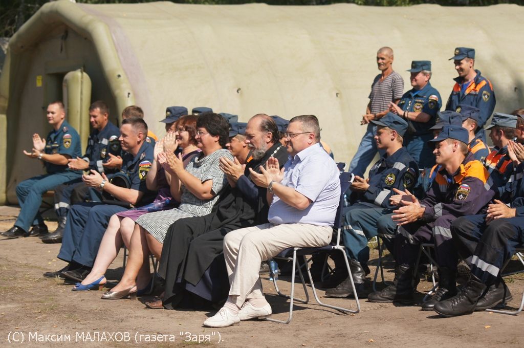 Идея провести концерт для спасателей силами районных творческих коллективов принадлежит Главе администрации района Олегу Лобановскому. Несколько дней назад он посетил лагерь спасателей, ознакомился с условиями быта, отдыха и работы пожарных. Сегодня в лагере под Радченко располагается около 50 спасателей, занятых на работах по обводнению торфяников в районе поселков Изоплит и Озерки. Как сказал командир подразделения подполковник Алексей Шереметьев, с поставленными задачами спасатели справляются. Для обводнения торфяников используется уникальный насосно-рукавный комплекс «Шквал», единственный в России аппарат для ликвидации пожаров, который перевозится на двух КАМАЗах, а при работе способен подавать воду объемом 300 литров в секунду. В лагере, который разместился в лесу в нескольких километрах от остановки «Дом рыбака», созданы все необходимые условия для нормального отдыха. Есть столовая, медицинский пункт, недавно в одной из палаток спасатели оборудовали баню.