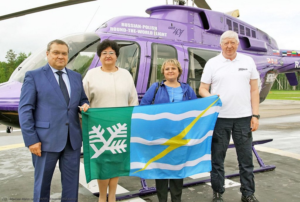 Олег Лобановский поздравил экипаж и вручил памятные подарки: «Вы выполнял задачу государственного масштаба, пролетев вокруг света, показали, что Россия это цивилизованная страна, что в ней развиваются такие виды спорта как вертолетный, и что мы можем достойно совершать великие вещи. Теперь, благодаря вам, Конаково знает весь мир». Участники расписались на флаге Конаковского района, который станет музейным экспонатом Селиховской школы.