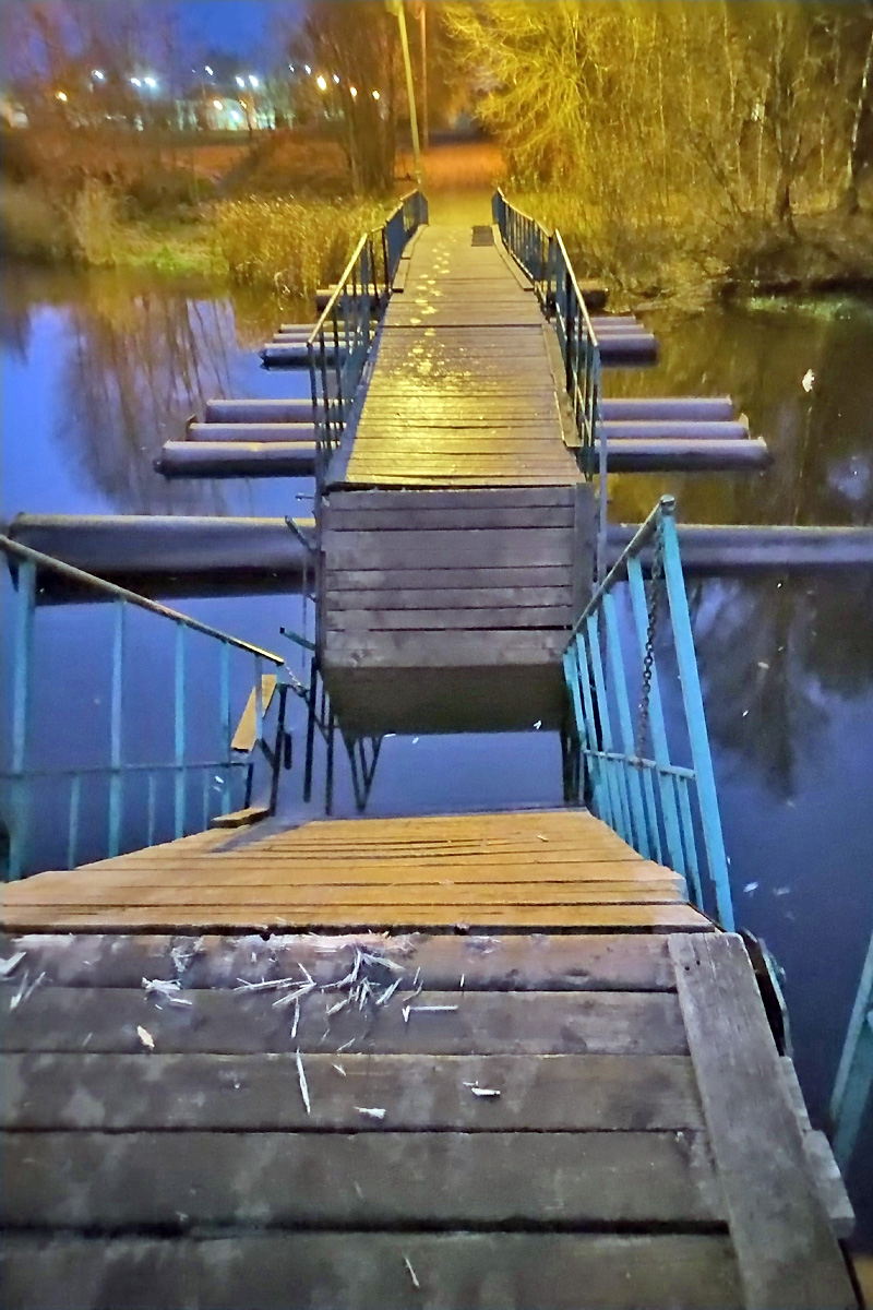 В ночь с понедельника на вторник пешеходный понтонный мост через реку Донховка, соединяющего 1-ую Набережную в районе сквера им. Ворохова и улицу Маяковского обрушился под тяжестью легкового автомобиля, въехавшего на сооружение. Хулиганский поступок водителя обернулся серьезными неудобствами для местных жителей.