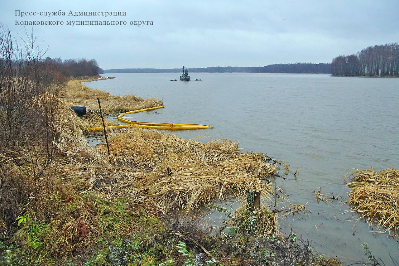 Этот проект начинался с того, что филиал «Мособлводхоз» ФГБВУ «Центррегионводхоз» в период с 2019 г. по 2021 г., в районе деревень Обухово, Коровино и Новое Завражъе провел мониторинг водного пространства и выявил участки зарастания водной растительностью площадью 18,4 гектара, а также значительные площади заиления мелководий - 172,4 гектара или около 98 процентов от всей площади залива. Средняя толщина иловых отложений в заливе составляет более 1 метра, предполагаемый объем изымаемых донных отложений составит около 1,2 миллиона кубометров.