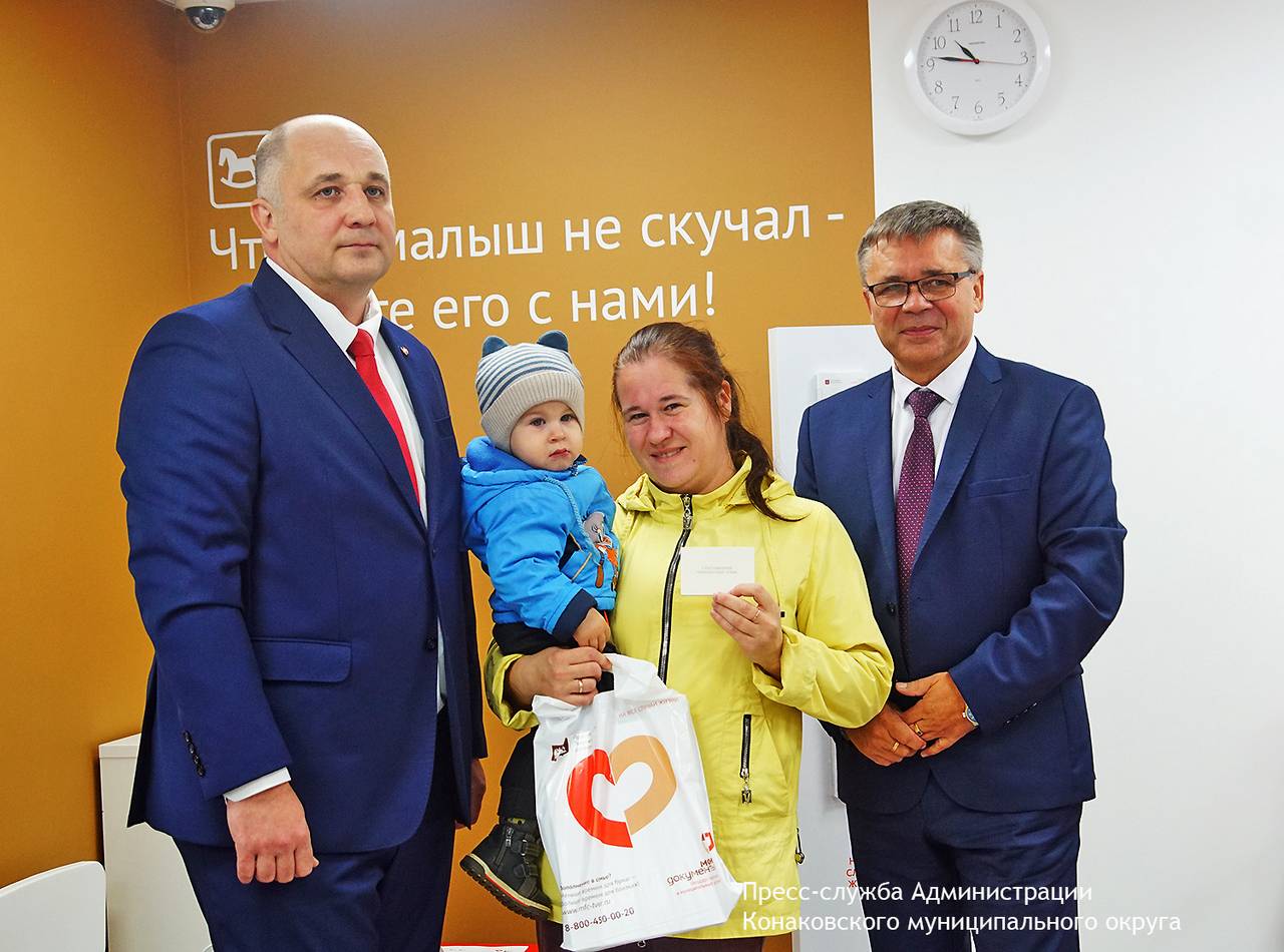 Первым посетителем обновленного МФЦ стала Елена Биберина. Она получила удостоверение многодетной матери. В семье Бибериных воспитываются две девочки и два мальчика в возрасте от 1 до 15 лет. Директор многофункционального центра ГАУ «МФЦ» Тверская область Денис Прудников и первый заместитель главы администрации Конаковского муниципального округа Виктор Садчиков вручили Елене удостоверение и памятный подарок.