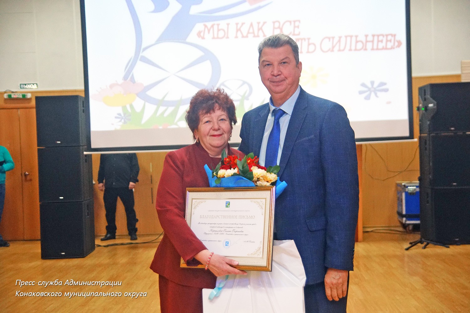 На праздник пришел встреться с членами организации Глава Конаковского округа Алексей Пляскин, который сказал добрые слова этим сильным духом людям. За активную жизненную позицию, участие в социально-значимых мероприятиях, долголетний безупречный труд Алексей Михайлович вручил активным членам общества Благодарственные письма. В числе награжденных – Сергей Николаевич Бабушкин, Ирина Евгеньевна Коржова, Екатерина Павловна Лопухова, Надежда Николаевна Макарова, Анна Сергеевна Нечаева и председатель КРО ВОИ Галина Георгиевна Корнилова.
